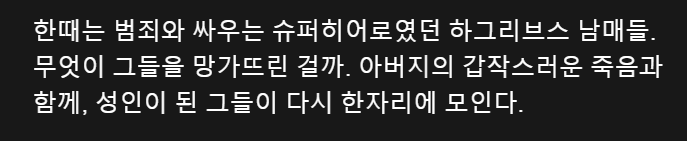 근데 존잼이에오 ㅠㅠㅠㅠㅠㅠㅠㅠㅠㅠㅠㅠㅠㅠ 타임워프같은 소재도 등장하고, 뭔가 ㅋㅋㅋㅋ 성인버전 해리포터 같달까? (이건 좀 오반가?) 제가 <기묘한이야기>가 인생 최고의 미드인 사람이라... 요것도 그거랑 비슷한 느낌이라 더 재미있게 본 것 같아요. <기묘한이야기> 재미있게 보신 분은 <엄브렐러 아카데미>도 꼭 보시길 추천해드릴게요!