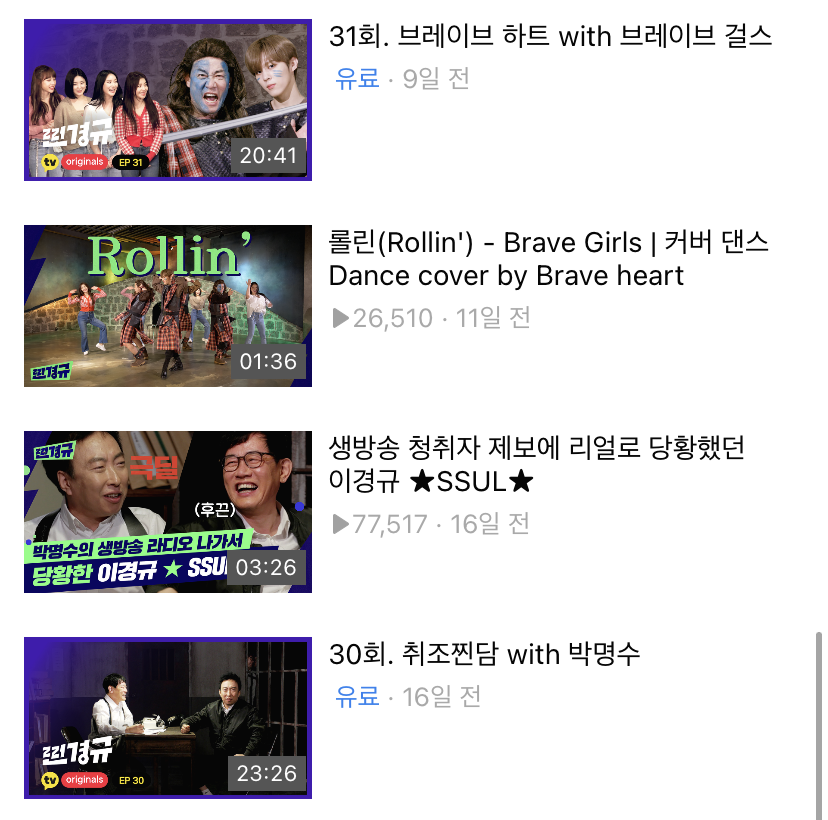 찐경규를 보려고 카카오tv 어플에 접속하니 뭔가 이상한 점을 발견했습니다.