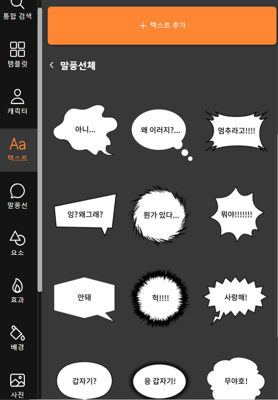 이렇게 말풍선도 다양하고, 사용할 수 있는 효과도 나름 다양하다!