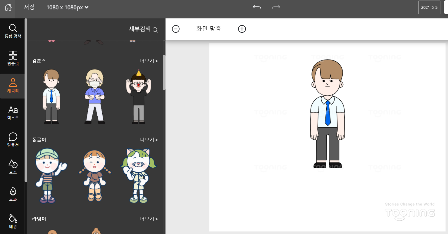 처음에는 망고보드 같은 건가...? 했는데 웹툰 캐릭터를 만들 수 있는 투닝(tooning.io/)이라는 사이트다!
