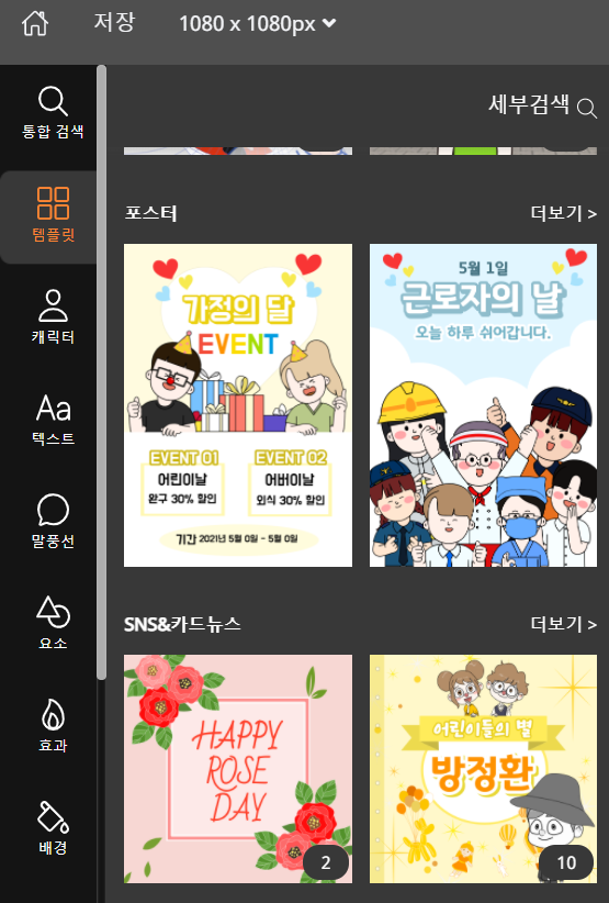 좌측 [템플릿] 카테고리에는 이런식으로 마케터와 선생님들을 위한 자료가 준비되어 있다.