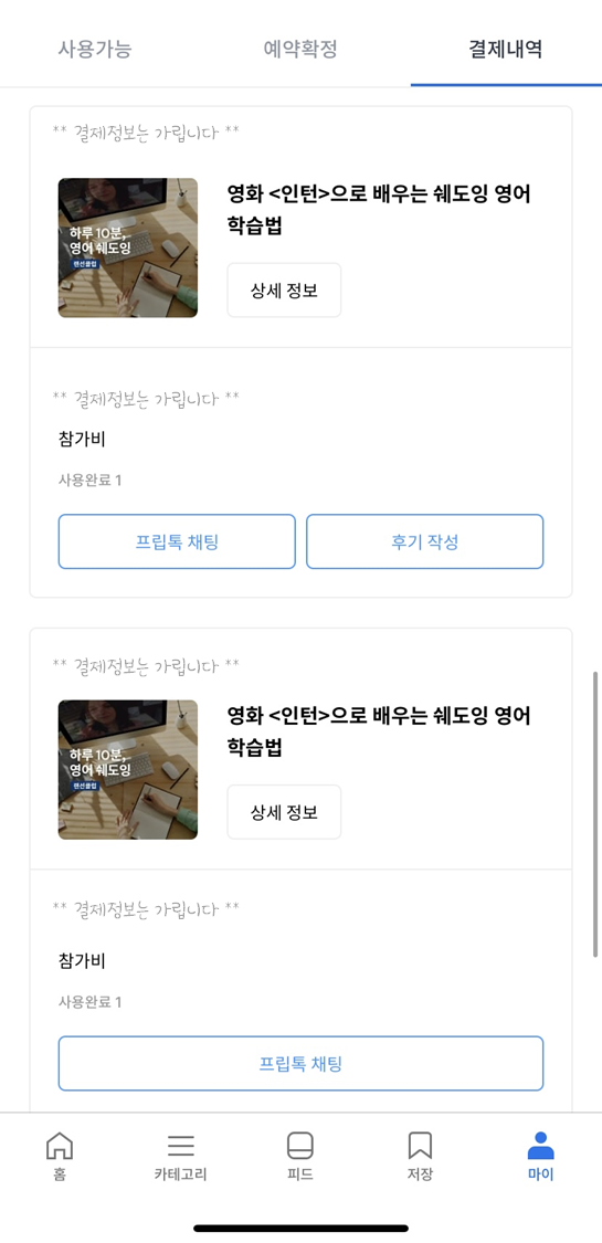 사실 요거는 영어공부 때문에 다운 받은 건 아니고, 원데이 클래스나 취미 활동 해보고 싶어서 다운 받았는데 영어 공부를 할 수 있는 스터디가 있어서 총 3개 들어봤다 (하나는 아직까지 수강중).